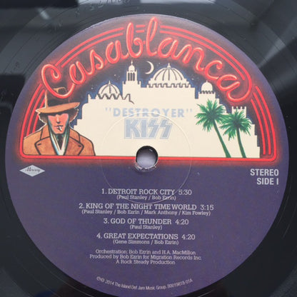 The inner record sleeve features the lyrics to 'Detroit Rock City' on one side and the Kiss Army logo on the other side. Recorded and mixed at Record Plant Recording Studios, N.Y.C. Quality Record Pressings did the plating and pressing for this reissue.