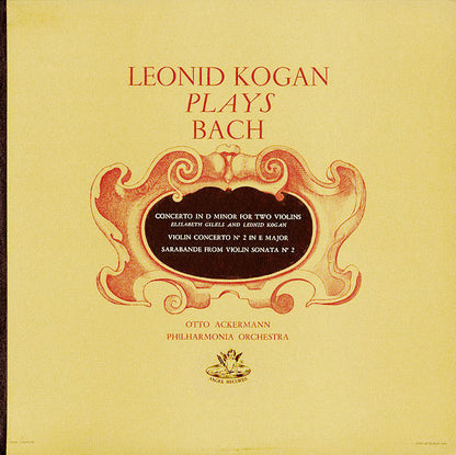 Leonid Kogan And The Philharmonia Orchestra Conducted By Otto Ackermann , With Elisabeth Gilels In The Double Concerto. J.S. Bach* - Leonid Kogan Plays Bach (LP, Album, Mono)