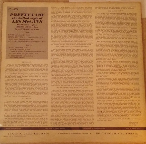 Les McCann Ltd. - Pretty Lady (LP, Album, Mono)