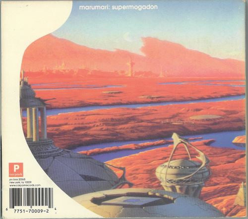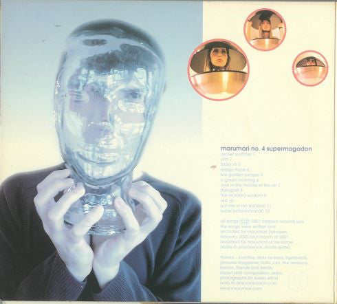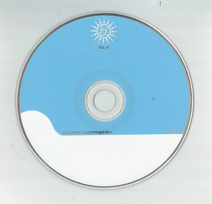 Digipak packaging. Marumari No.4 Supermogadon. All songs ©℗ 2001 Carpark Records USA. The songs were written and recorded by Marumari between February 2000 and March 2001. Mastered by Marumari at his home studio in Providence, Rhode Island. Thanks... Kracfive, Stars As Eyes, Tigerbeat6, Grooves Magazine, Todd, Cex, the remixers, Bacon, friends, and family.