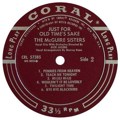 McGuire Sisters - Just For Old Time's Sake (LP, Album, Mono)