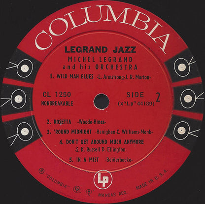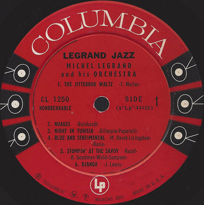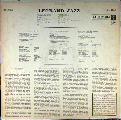 Official Title On LP Sleeve and Spine is Legrand Jazz - Michel Legrand With Thirty-One Of America's Greatest Jazzmen Featuring Miles Davis. Label shows Legrand Jazz - Michel Legrand and His Orchestra. Tracks A1, A6, B1, B3 - Recorded June 25, 1958 (New York City) Tracks A2, A4, B2, B4 - Recorded June 27, 1958 (New York City) Tracks A3, A5, B5 - Recorded June 30, 1958 (New York City)