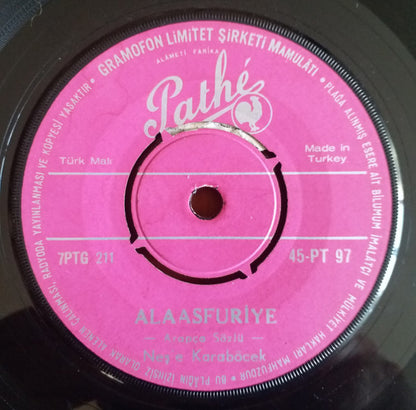 An early recording of Neşe Karaböcek under Pathe Label... Ala Asfuriye lyrics are in Arabic.