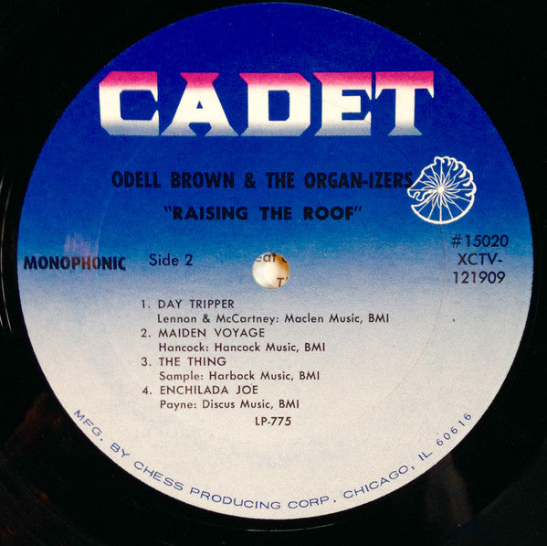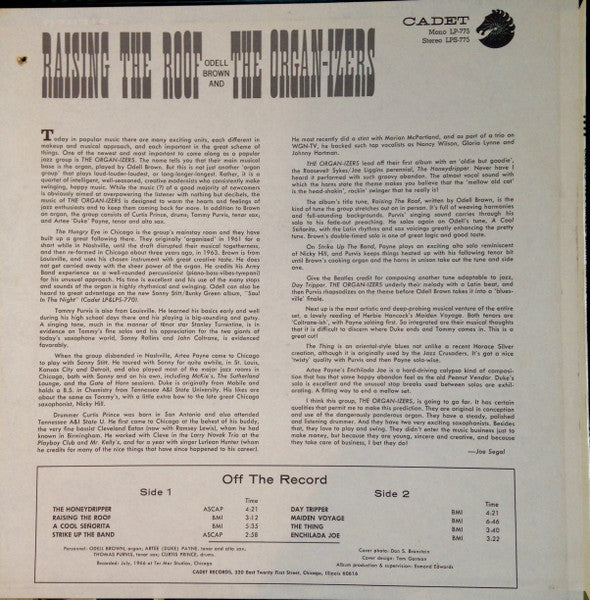 Recorded at Ter Mar Studios, Chicago July 1966. Artist misprinted on spine: "Ordell Brown And The Organ-izers"