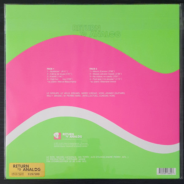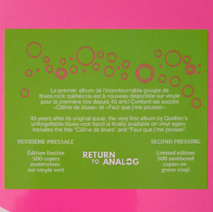Limited pressing on green vinyl. "Détersif puissant, lave plus blanc que blanc" 45 years after its original issue, the very first album by Québec’s unforgettable blues-rock band is finally available on vinyl again. Includes the hits “Câline de blues” and “Faut que j’me pousse”. Le premier album de l’incontournable groupe de blues-rock québécois est à nouveau disponible sur vinyle pour la première fois depuis 45 ans! Contient les succès « Câline de blues » et « Faut que j’me pousse ».