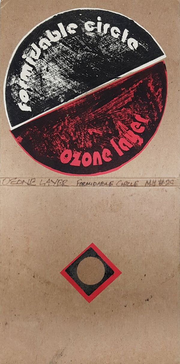 Ozone Layer is a solo cd by Marc Orleans, member of Sunburned Hand of the Man, D Charles Speer, Juneau, Limited numbered edition of 300 copies. card-stock gatefold cd jacket with pasted on red and white art.