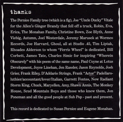 All songs © Bony Gap Music (BMI) © ℗ 1998 Sub Pop Records