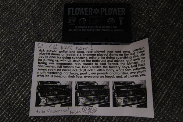 100 copies only limited edition cassette release. Liner notes: Rick played guitar and sang, Rose played bass and sang, Brendan played drums on tracks 1-4, Shannon played drums on the rest. Thank you to Chris for doing everything, Mike P. for doing everything else, Iain for putting up with us, Steve for the bratwurst and advice, and Andy for being our roommate. Also, thanks to bad flannel, The Bishops, The Hollowmen, Full Fathom Five, Lonely Trailer, The Bowery Boys, Bad Toad, Sound Seen, No Cover, Rick Didjit, Rick R., Ellen, Barry, Ward, Tom, Software, Math Modeling, Hardware, Paul L., our parents and families, everyone who let us sleep on their floor, everyone we forgot, and, of course, you.
