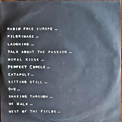 Includes a printed inner sleeve. ℗© 2009 I.R.S. Inc. Manufactured by A&M Records... Distributed by Universal Music Distribution. Recorded January 83... at: Reflection Charlotte, NC. All seslections published by Night Garden Music (BMI) Administered throughout the Universe by Unichappell Music, Inc. (BMI) Labels: Manufactured and distributed by A&M Music, Inc.