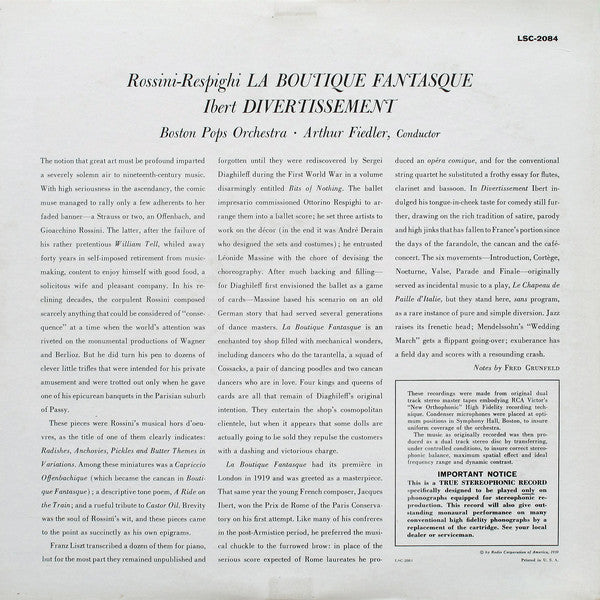 Rossini* - Respighi* / Ibert*, Boston Pops Orchestra ... Arthur Fiedler - La Boutique Fantasque / Divertissement (LP, Ind)