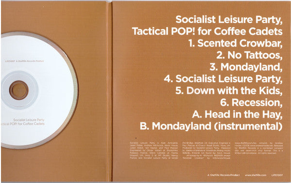Edition of 300: issued in gatefold sleeve with obi. Part of Shelflife's "1000 series" CD+7" format. "The period of music history we've come to know as post-punk was a frenzied but all-too-brief window, a time when seemingly countless sounds and schools of thought diverged from the flash point of the Pistols and Ramones. Among them was a new kind of pop - fast, economical, and spurred to life by the healthy skepticism of punk's first flush. But unlike the dour, confrontational likes of, say, Joy Division or PiL, this was music that sought to entertain as much as challenge, to seduce with melody while it subtly subverted the norm: Subway Sect, the Monochrome Set, Fire Engines, Postcard Records' "Sound of Young Scotland" stable (Orange Juice, Josef K). It was pop, but not as we'd known it. But, rather than the beginning of a revolution, post-punk proved to be a self-contained moment. Its best bands either broke up, lost their insurrectionary fire, or mutated into something perhaps as good but entirely different. We have those records still, of course, but when was the last time we heard something new that sparks with such rough-hewn charm, that wields a simplicity so perfectly realized, you suspect it probably isn't simple at all? From their provocative name to their lean, bright songs, Socialist Leisure Party are a band of a sort we haven't heard for a very long while. And yet, in the subtle but undeniable way they acknowledge and engage with the modern world, they are a band unlike any we've heard before. Featuring singer-guitarist Andy Hitchcock and bassist Kevin House (both formerly of Sarah Records/Damaged Good/Fierce Panda signings Action Painting!), plus guitarist Axel Amicabile and drummer Julien Kokot, Socialist Leisure Party have been working toward their debut EP, the wonderfully titled Tactical POP! for Coffee Cadets (perhaps a winking nod to Fire Engines' epochal Lubricate Your Living Room album, which that band described as "background music for action people"), since 2006. With what will soon be recognized as characteristic insurrectionary fire, Hitchcock explains that their name was chosen "for its deliberate awkwardness, as an antidote to an atmosphere of smug apathy and marketing subservience in the British music scene. Their intent: to be the anti-Kooks. 'Socialist' is a taboo word in the British media, a cuss word more potent than any cliched blaspheme expected of a 'rock and roll' band." Make of that statement what you will: The eight songs that make up Tactical POP! brim with a relentless vigour that needs no explanation to be understood. The band's briskly strummed guitars and galloping rhythms, and Hitchcock's eternally youthful voice, combine to make some of the most effortlessly engaging pop in recent - or even long-distant - memory. From the unashamedly romantic declaration that is "Scented Crowbar" to the band's eponymous theme song (a playful echo of Orange Juice's "Moscow Olympics"), this is music to which you can dance, fall in love, plot a revolution either personal or public. But it can't be ignored."