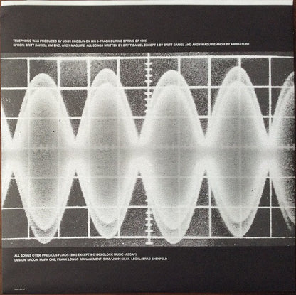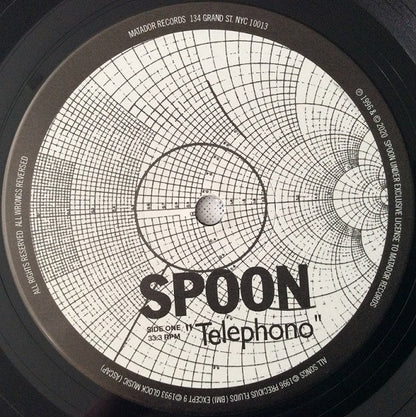 Sticker: Slay On Cue Spoon catalog classics The debut album, available on vinyl for the first time since 1996 Newly recut from the original masters Includes a custom inner sleeve. Tracks are numbered sequentially across sides on the release. ℗1996 ©2020 Spoon under exclusive license to Matador Records Matador Records 134 Grand St. NYC 10013 matadorrecords.com Telephone was produced [... on his 8-track during spring of 1995 All songs ©1996 Precious Fluids (BMI) except B9 ©1993 Glock Music (ASCAP)