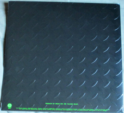 Nearly identical to [r4728034, but this version doesn't have the catalog number "R1-6076". Also the two lines of text on the bottom of the back cover are different. Catalog number "8122796554" appears on the spine, inner sleeve and labels. Catalog number "8122-79655-4" appears on the sticker. Says "Made in EU." on the labels. Says "Manufactured in the E.U." on the back cover. Based on the runouts and the information on the pressing plant profile ([l313190), this version was manufactured in 2013. All songs © 1979 Index Music/Bleu Disque Music Co. Inc. (ASCAP) except "I Zimbra" © 1979 Index Music/Bleu Disque Music Co. Inc. (ASCAP)/E.G. Music Ltd (BMI). The birds on "Drugs" recorded at Lone Pine Koala Sanctuary, Brisbane, Australia All basic tracks recorded at Chris and Tina's Loft in Long Island City, with The Record Plant Remote Truck on April 22 and May 6, 1979 Robert Fripp appears courtesy of E.G. Records Ltd. Thermograph (Heat Sensitive Photo) courtesy Dr. Philip Strax Concept: David with Jerry's help ℗ 1979 Sire Records Company © 1979 Sire Records Company