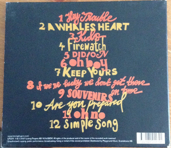 Housed in a 4-panel Digipak with a 12-page booklet inside. Recorded and mixed at Aerosol Grey Machine, Vallarum. Additional recordings at Konst & Ramar, Stockholm. Kyle Field recorded at Bobby Birdman's gemshack in Echopark, California.