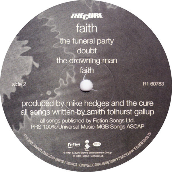 Has Rhino Vinyl hype sticker, includes the text "Remastered by Robert Smith" and "180 gram heavyweight vinyl". ℗ 1981 & 2005 Elektra Entertainment Group © 1981 Fiction Records Ltd.