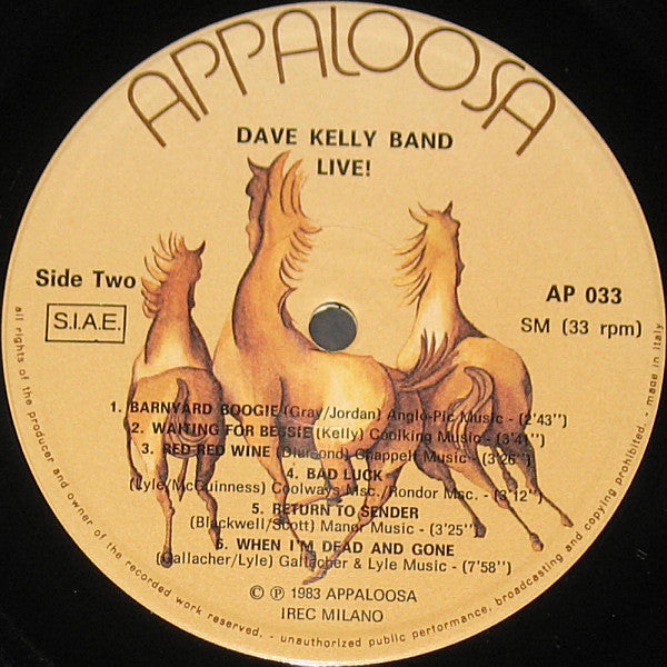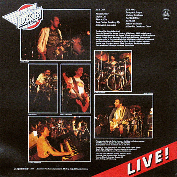 Recorded live at the Venue, London, 18 February 1983, except A1, B1, B2 recorded at Polygram Workshop, 16 February 1983. Mixed at Shepperton on the Stones' Mobile. Publishers: A1 to A3, B2 : Coolking Music A4 : Carlin Music A5 : Bocu Music B1 : Anglo-Pic Music B3 : Chappell Music B4 : Coolways Msc./Rondor Msc. B5 : Manor Music B6 : Gallagher & Lyle Music