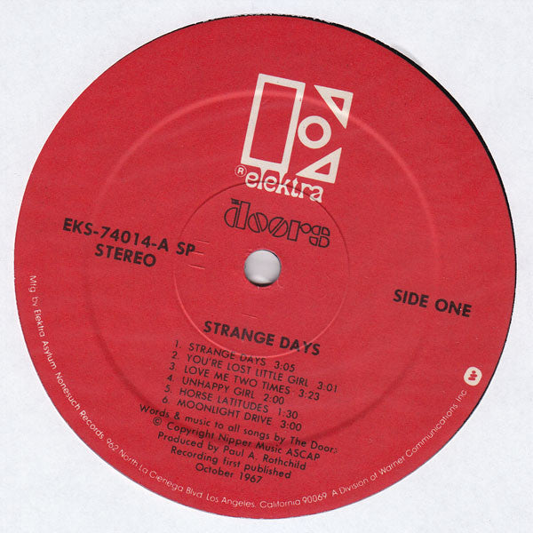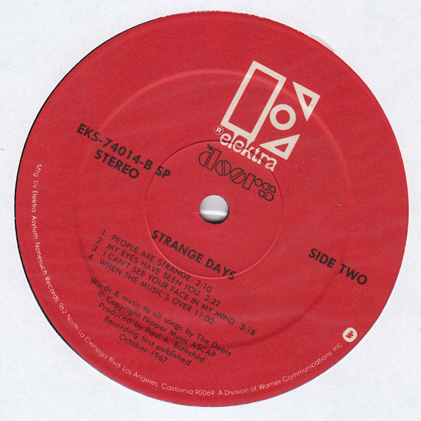 1980 pressing; Red E label with Warner logo around edge. This is not the larger E label that was used in the late '60s. Contains printed inner sleeve with band photo on one side, lyrics on the other. Recorded by Sunset Sound Recorders, Hollywood Mastered at Madison Sound, New York