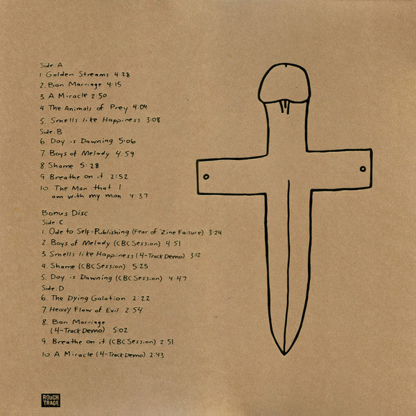 "2 LP Deluxe Anniversary Edition". Limited edition translucent yellow vinyl in gold-embossed gatefold sleeve. Includes printed inner sleeves and 24×12" insert. Tracks are listed sequentially for each disc. Sides A and B are the original album (Rough Trade, 2003). Sides C and D are a bonus disc. C1 was originally released on 217436 (Rough Trade, 2003). C2, C4, C5 and D9 were originally released on 75772 (Rough Trade, 2004). C3 is previously unreleased. D6 and D7 were originally released on 300290 (Rough Trade, 2003). D8 was originally released on [r=819227 (Earworm, 2004). D10 was originally released on 217438 (Evil Evil, 2002).