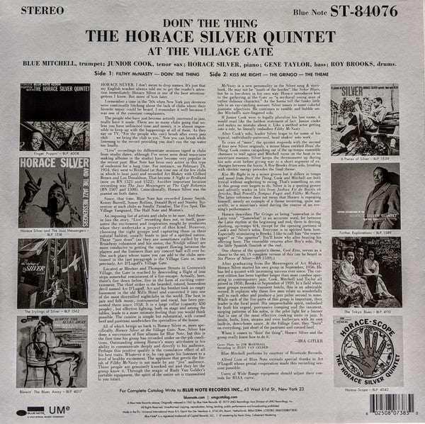 The Horace Silver Quintet - Doin' The Thing - At The Village Gate (LP, Album, RE, 180)