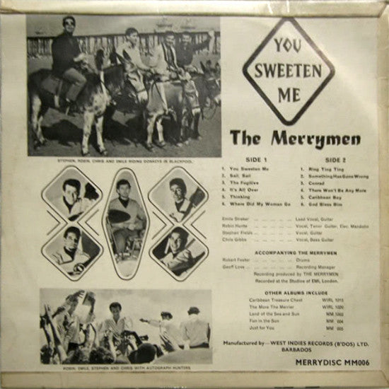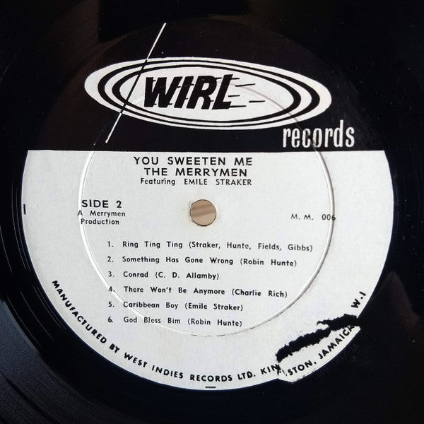 Issued in a front-laminated 'flipback' sleeve stating on rear:: Recorded at the Studios of EMI, London. Other Albums Include: [r=4670410 WIRL 1015 [r=3027083 WIRL 1020 [r=2604369 MM 1003 [r=3969625 MM 004 [r=1899503 MM 005 Manufactured by - West Indies Records (B'dos) Ltd. Barbados Merrydisc MM006. The record is on the WIRL Records label, crediting The Merrymen Featuring Emile Straker with cat# M.M. 006 A Merrymen Production.