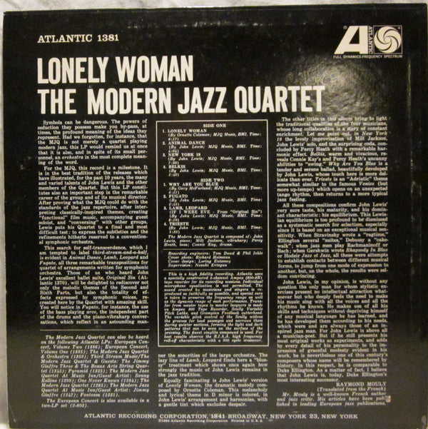 The Modern Jazz Quartet - Lonely Woman (LP, Album, Mono, MGM)