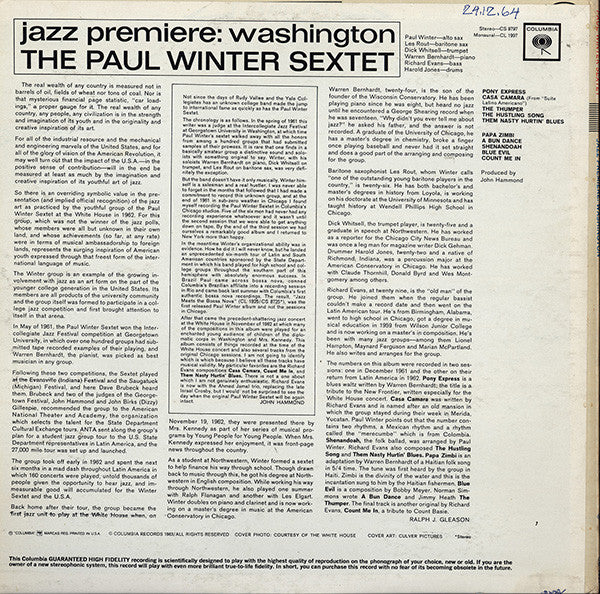 The Paul Winter Sextet - Jazz Premiere: Washington (LP, Album, Mono)