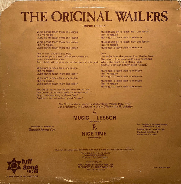 The Wailers - Music Lesson / Nice Time (12")
