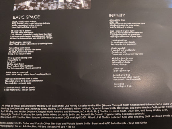 Comes in a die-cut cover and folded poster with lyrics songs. Different pressing no URP logo. A6 is a bonus track. Recorded at XL Studios, West London between December 2008 and April 2009. Mixed at XL Studios between April 2009 and May 2009. Mastered at The Exchange, Camden. ℗ 2009 Young Turks. © 2009 Young Turks.