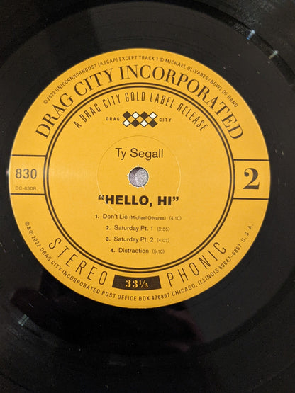 Ty Segall - Acoustic & Electric Guitar, Drums, Bass, Electric Piano, and Voice Charles Moorhart - Drums on "Looking at You", "Saturday Pt.2" and "Distraction" Ben Boye - Rhodes on "Looking at You" Mikal Cronin - Saxophone on "Saturday Pt.2" ALL SONGS WRITTEN BY Ty Segall except "Don't Lie" WRITTEN BY MICHAEL OLIVERES and originally performed by THE MANTLES EXCEPT "Looking at You" RECORDED & PRODUCED BY COOPER CRAIN PHOTOGRAPHY & ART BY DENEE SEGALL **Copies of the LP ordered from and shipped by Drag City include a blank cassette labelled 'dub "Hello, Hi"', intended for purchasers to 'dub' a copy of the Lp for a friend**