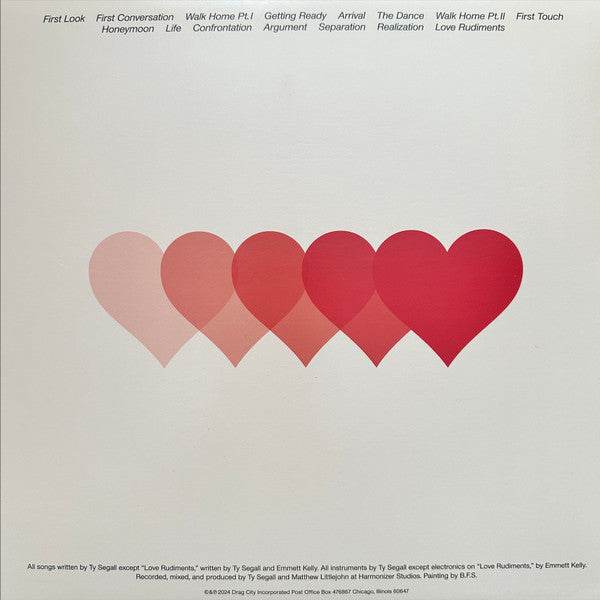 A meditation from Ty Segall on love, played on his first love: the drums. Delving deep into the melodic and orchestral possibilities of a full array of percussion instruments, from the trap kit to timpani, vibraphone, xylophone, percussion and e-drums, Ty charts the waxing and waning of a love affair, to explore some of the most delicate space we know of — the private emotional location where only two can meet.