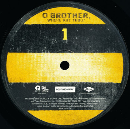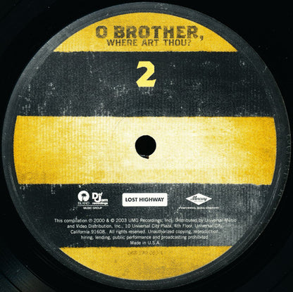 Music from the film "O Brother, Where Art Thou?" by Joel Coen & Ethan Coen. This compilation ℗ 2000 & © 2003 UMG Recordings, Inc. Distributed by Universal Music and Video Distribution, Inc. Motion Picture Artwork & Artwork Title © 2000 Buena Vista Pictures Distribution and Universal Pictures. Photographs © 2000 Buena Vista Pictures Distribution and Universal Pictures. 088 170 069-1 STO1 appears on Lost Highway's cover sticker 088 170 069-1 appears on Labels and spine